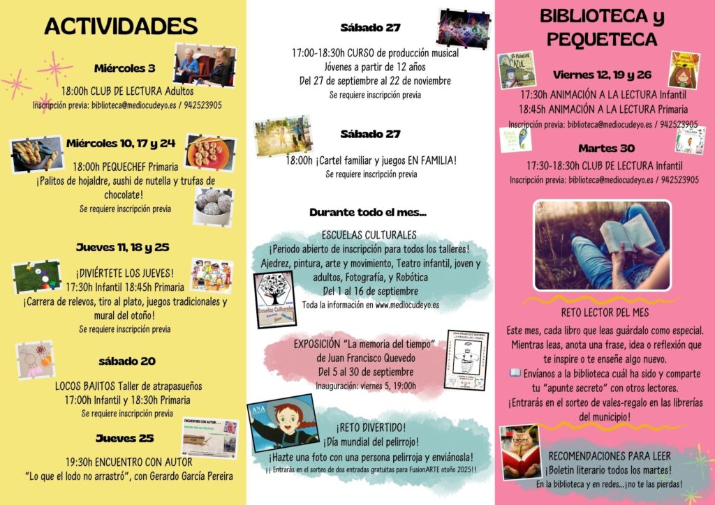 Puedes descargar el tríptico con toda la información aquí: TRÍPTICO. Actividades septiembre