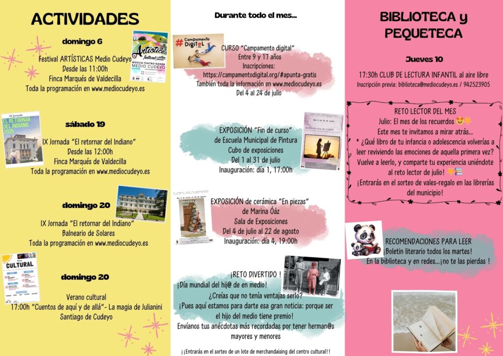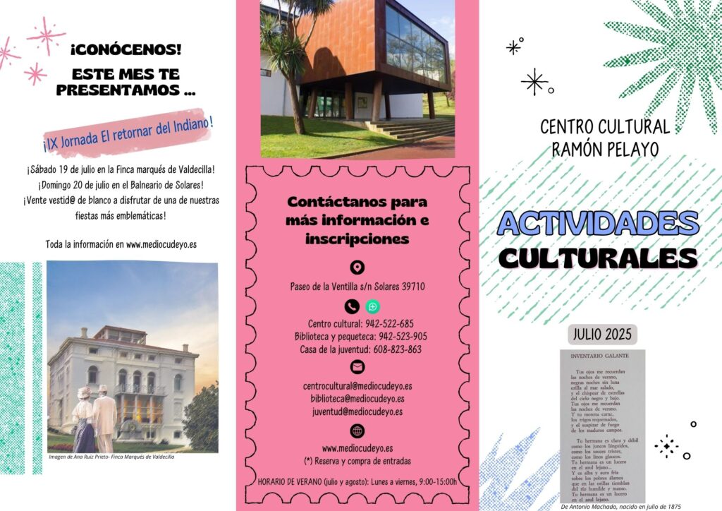 Descubre toda la actividad cultural en Medio Cudeyo para el mes de julio. Descarga el tríptico: actividades julio PDF