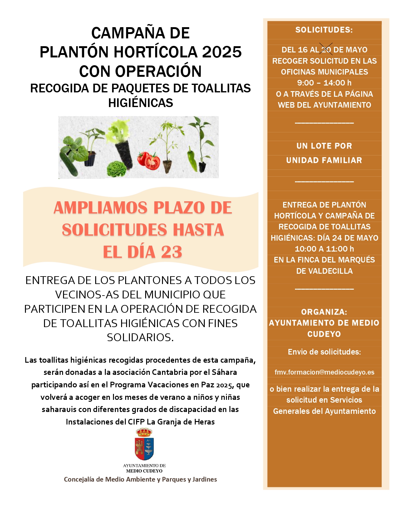 AMPLIACIÓN DEL PLAZO PARA SOLICITAR PLANTÓN DE HUERTA
