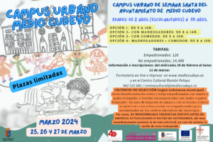 La Concejalía de Educación abre el plazo de inscripción para el Campus Urbano de Medio Cudeyo para la semana no lectiva de SEMANA SANTA 2024.