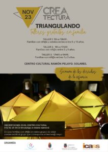 Createctura vuelve al al Centro Cultura Ramón Pelayo de Solares con una nueva propuesta para disfrutar en familia. TRIANGULANDO es una propuesta artística de creación colectiva basada en la geometría triangular. En el primer taller dedicado a los más mayores, construiremos el propio espacio a través de estructuras geodésicas y poliédricas. En los tres talleres existirán múltiples propuestas con diferentes materiales para jugar, explorar y crear junt@s. El sábado 23 de noviembre se ofrecerán talleres gratuitos para familias con niños a partir de un año.