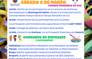 ¡Carnaval, Carnaval...! Llega el Carnaval a Medio Cudeyo con nuestro tradicional desfile, concurso de disfraces, espectáculo familiar, entierro