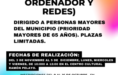 Inscripción gratuita hasta completar plazas, del 23 al 31 de Octubre en Servicios sociales de Medio Cudeyo. Calvo