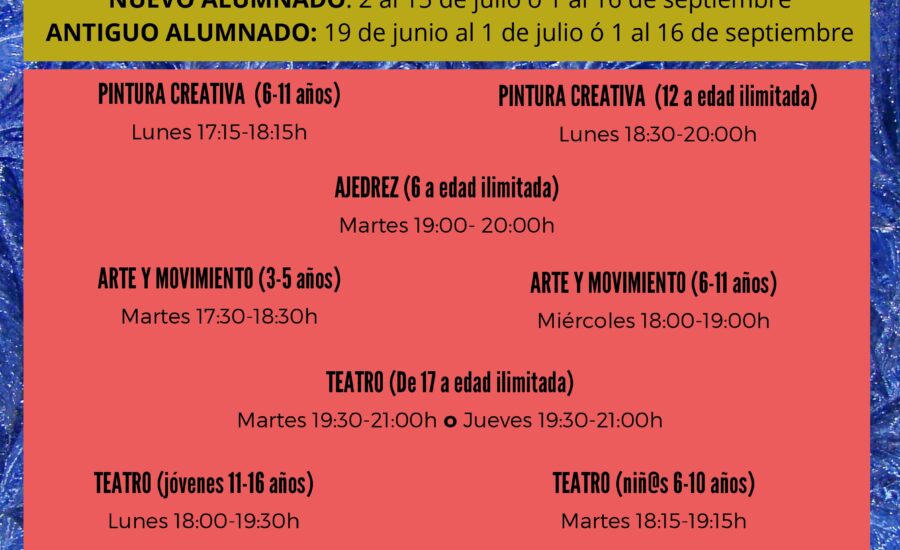 Pueden consultar el listado de admitidos/as a las Escuelas Culturales para el curso 2025/2026, con el DNI de referencia del alumno/a, padre/madre/tutor/a que hayan puesto en la inscripción, pinchando aquí: Listado de admitid@s