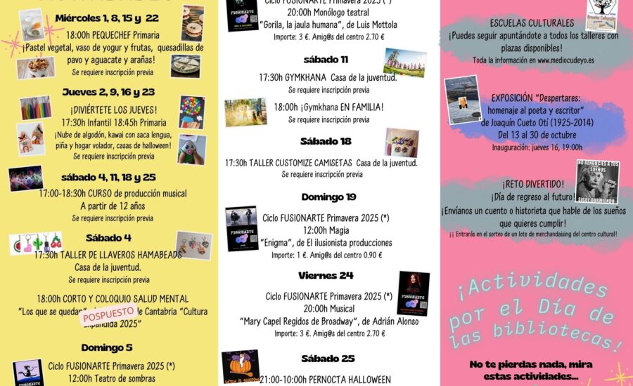 Llega el otoño cargado de actividades culturales en Medio Cudeyo, con un nuevo curso cargado de actividades culturales y con la celebración durante todo el mes del Día Internacional de las Bibliotecas Puedes