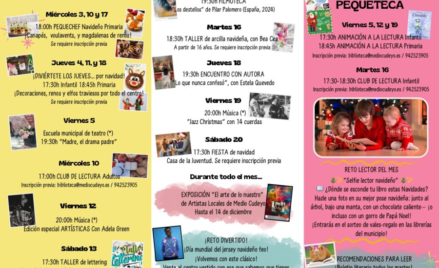 La Navidad llega a Medio Cudeyo cargada de actividades culturales. Puedes descargar el tríptico con toda la información aquí: TRIPTICO. Actividades diciembre PDF